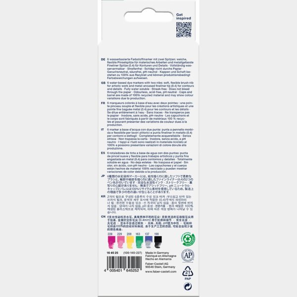 - This set includes the Faber-Castell color numbers: 229, 208, 137, 228, 163 and 199.