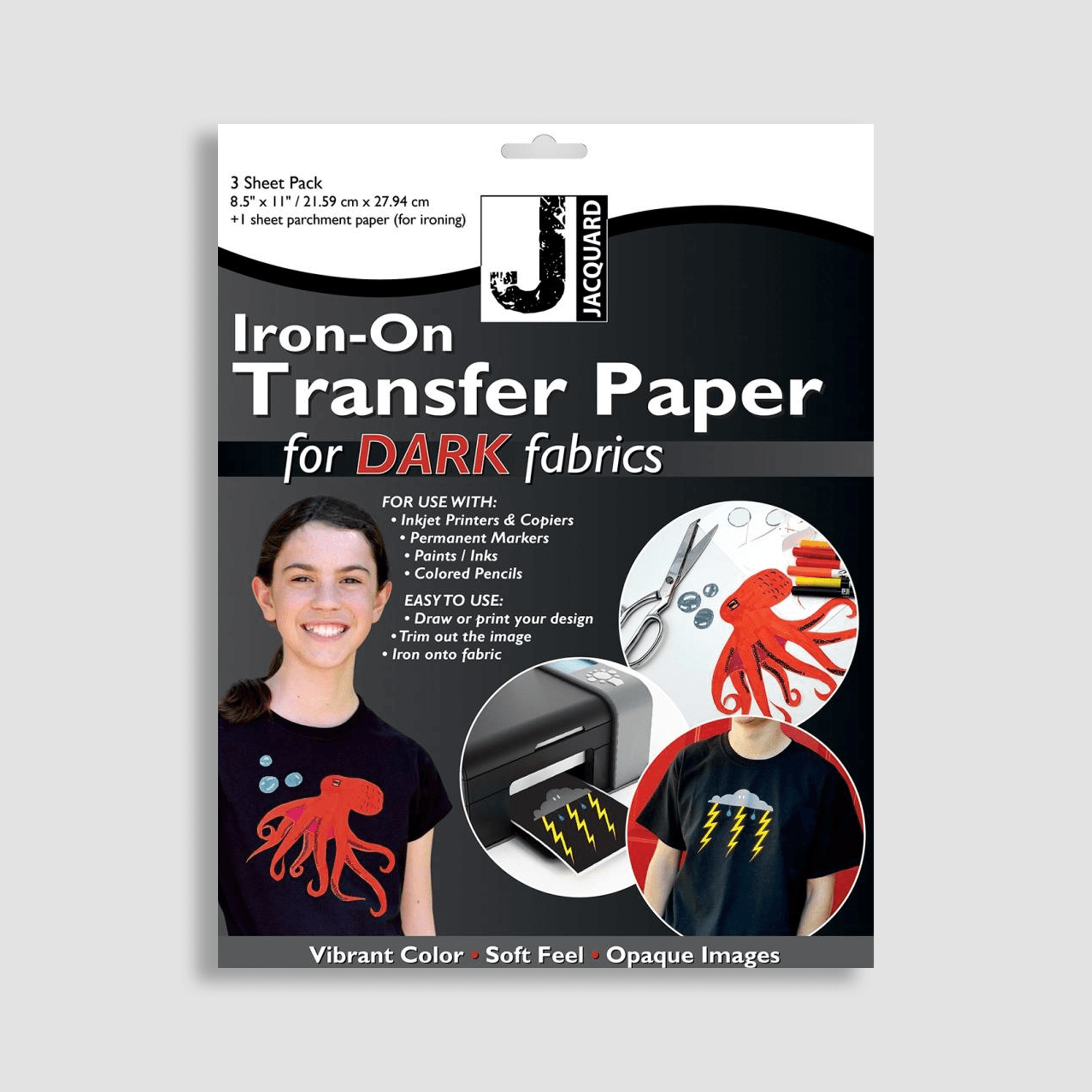 These transfer sheets from Jacquard are specially for dark fabrics (think black or navy blue). The sheets have a white background layer to make the colors as vivid as possible against a dark background. The sheets are suitable for use on all types of fabrics, including spandex and other stretchy fabrics.