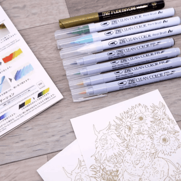 - De pigmenten worden gemengd met water via kwasten of waterbrushes