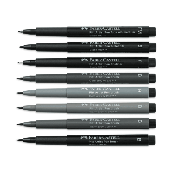 Er zijn veel tekentechnieken en deze set van Faber-Castell is perfect voor zogenoemde inkt tekeningen. De set bevat namelijk 8 fineliners in verschillende punten zodat je alles hebt om een realistische tekening neer te zetten. Deze pennen van Faber-Castell zijn van hoge kwaliteit India inkt en liggen fijn in de hand.