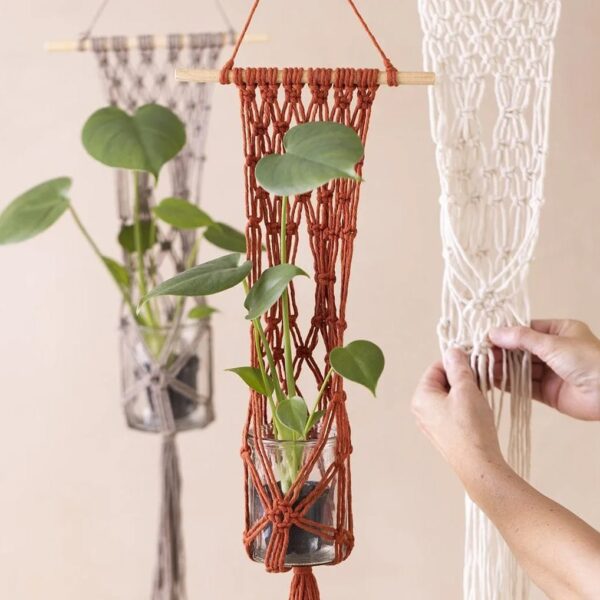 Wil je leren hoe je een bloemhanger maakt met slechts drie macraméknopen? Dan is deze set perfect voor je.