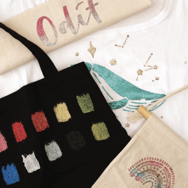 Na het aanbrengen droogt de gel transparant op (± 1 uur). Wanneer de gel helemaal droog is moet deze nog kort (30 seconde) extra gefixeerd worden door middel van hitte. Gebruik hierbij bakpapier en een strijkijzer. Zo ontstaat een duurzaam, sprankelend effect dat niet uitvalt of loslaat. Na 24 uur is de creatie (op textiel) wasbaar tot 30 graden.