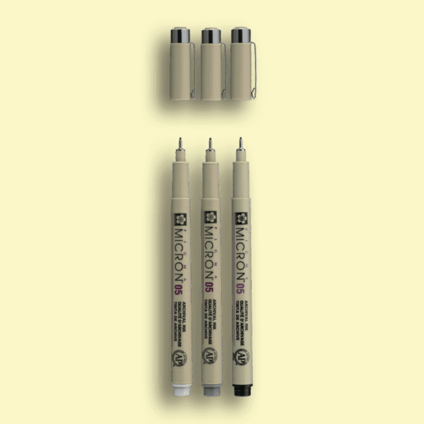 De Sakura Pigma Micron 05 Set – 3 Fineliners in zwart en grijs is een onmisbare basis voor iedereen die houdt van tekenen, schrijven en illustreren.