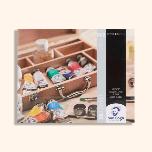 De Van Gogh basis olieverf set is een complete en luxe schilderset voor iedereen die kennis wil maken met olieverf van kunstenaarskwaliteit. Deze set bevat een zorgvuldig geselecteerd basispalet Van Gogh olieverf, aangevuld met praktische accessoires, zodat je direct kunt beginnen met schilderen. Ideaal voor beginnende olieverfschilders, kunststudenten en hobbyisten die kwaliteit zoeken in een overzichtelijke set. Extra fijn is de nette houten kist waarin alles opgeborgen is. Zo kun je deze set georganiseerd houden en makkelijk overal mee naartoe nemen.